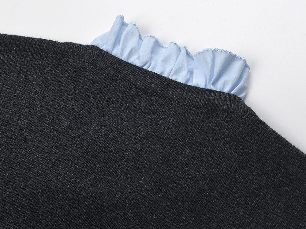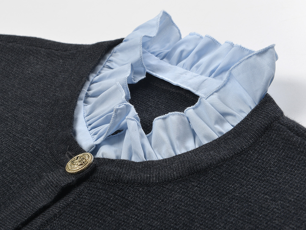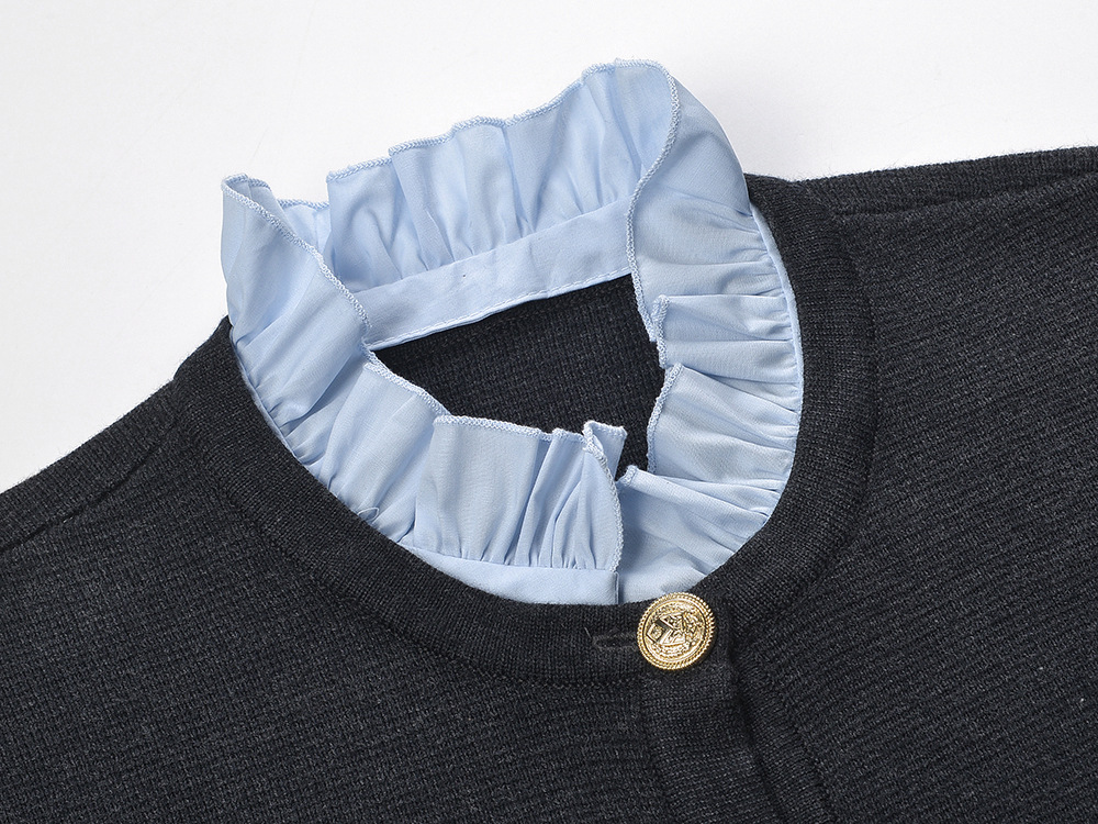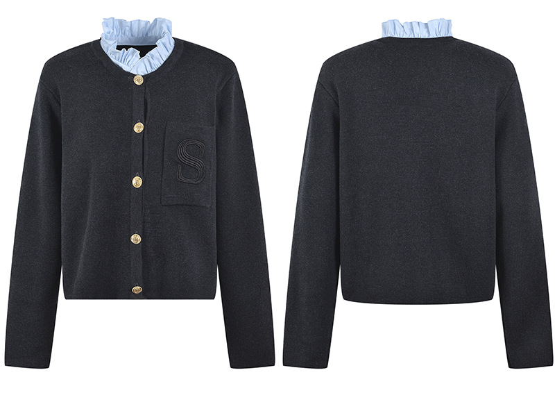Embroidery Letter Pocket Women Knit Sweater Coat Stitching Ruffles Collar Long Sleeve New Ladies Knit Cardigan 5220472
