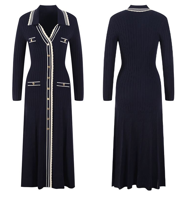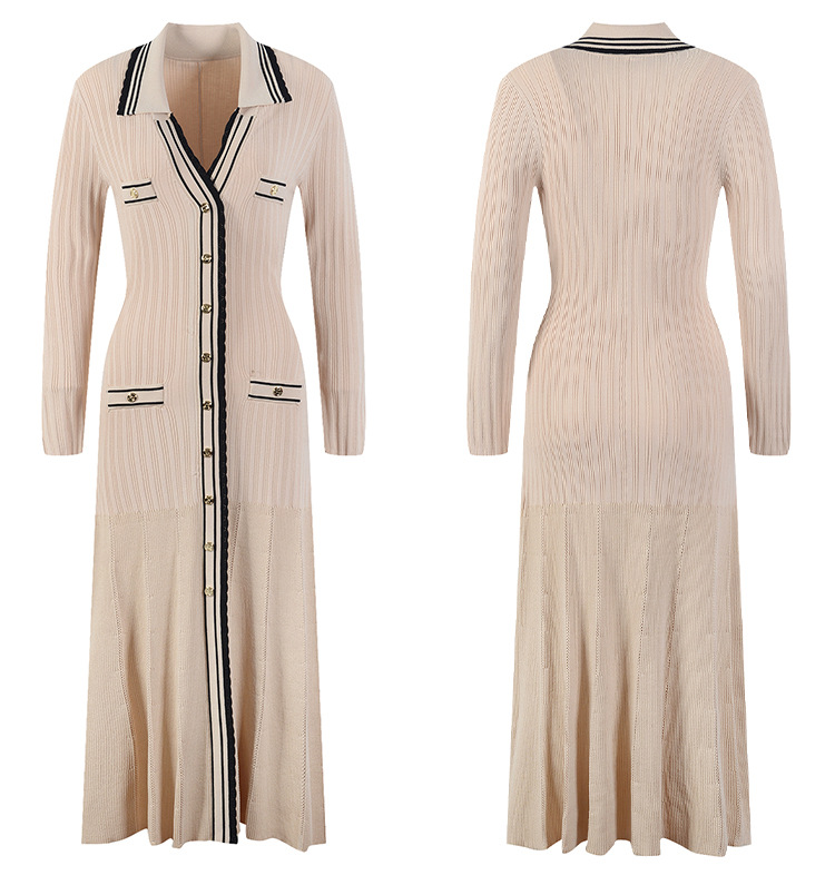 Fashionable and Comfortable New One-piece Dress Single Breasted Slim V-neck Knitted Long Sleeve Dress 5210677
