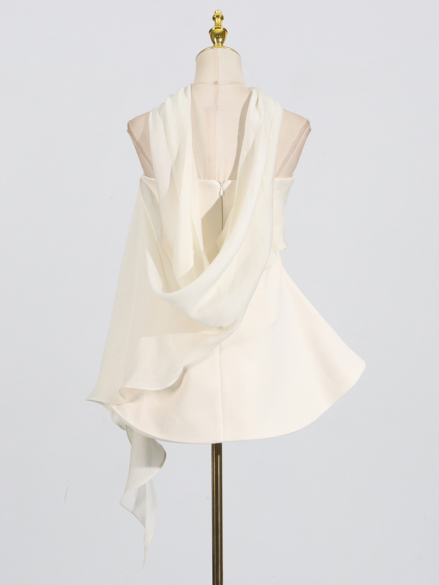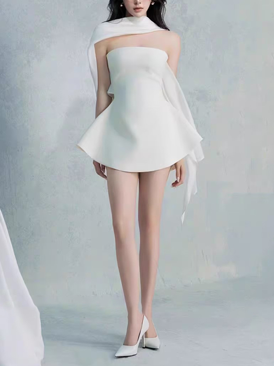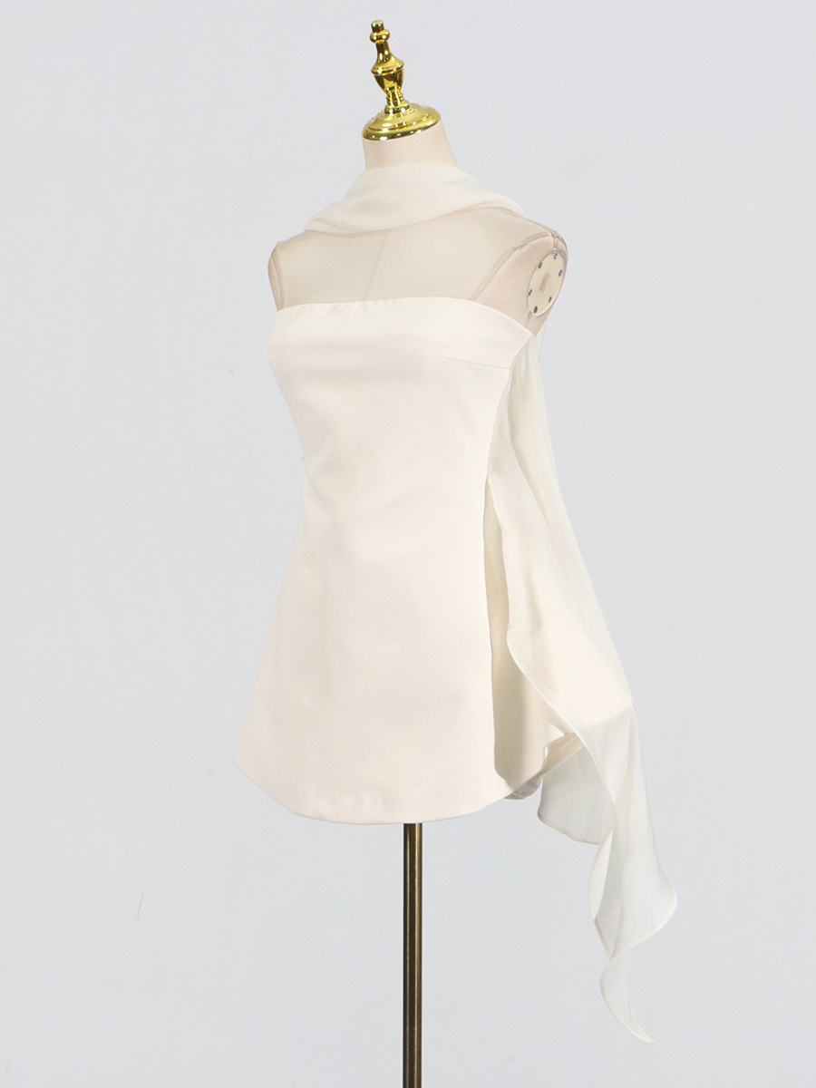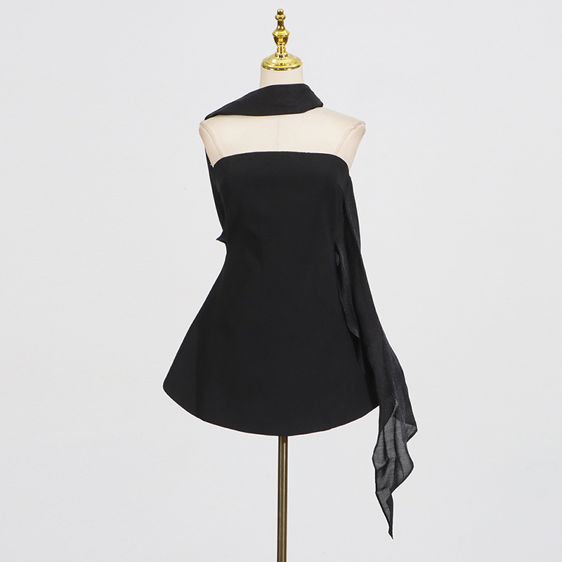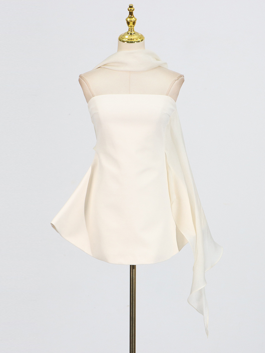 Fashionable patchwork design, children’s 2025 autumn new style, solid color, slim fit, high-end, short strapless dress