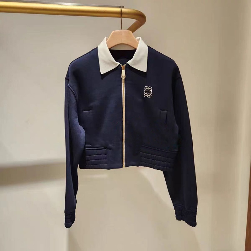 French single niche 2025 autumn and winter loose shoulder sleeves contrasting color lapel zipper waist collection short jacket hoodie