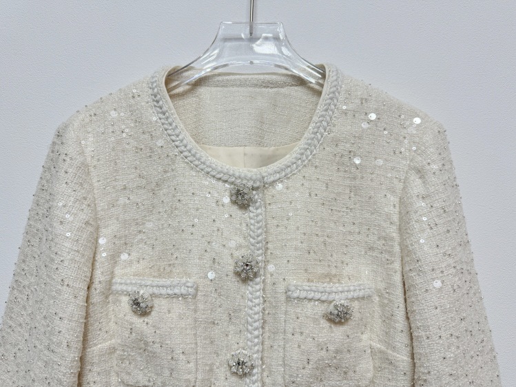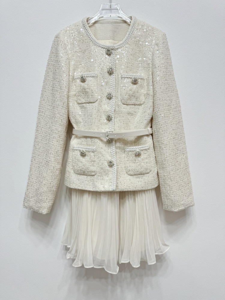 High Quality Women Short Tweed Dress New Autumn/winter New Women’s Long Sleeved Beige Sequined Woolen Patchwork Dresses 52122