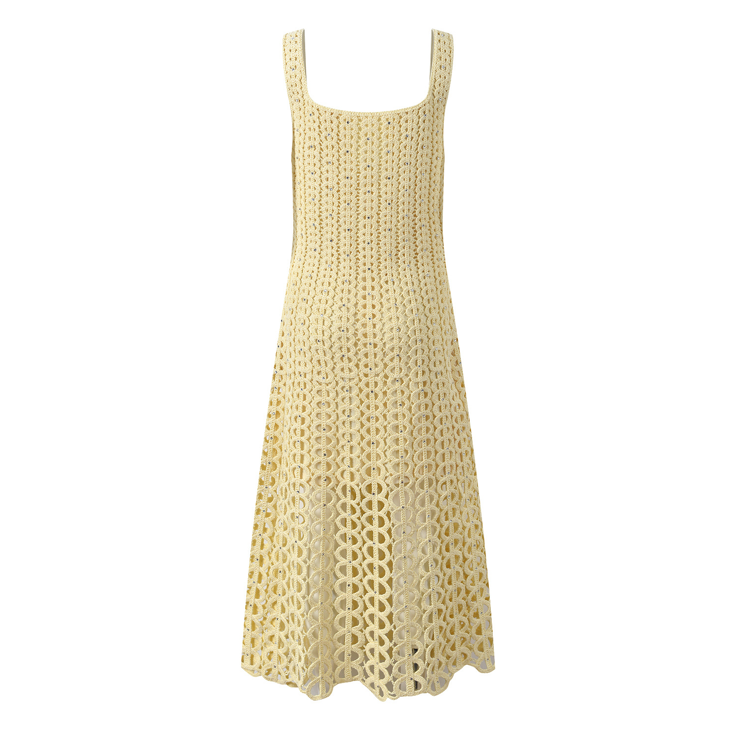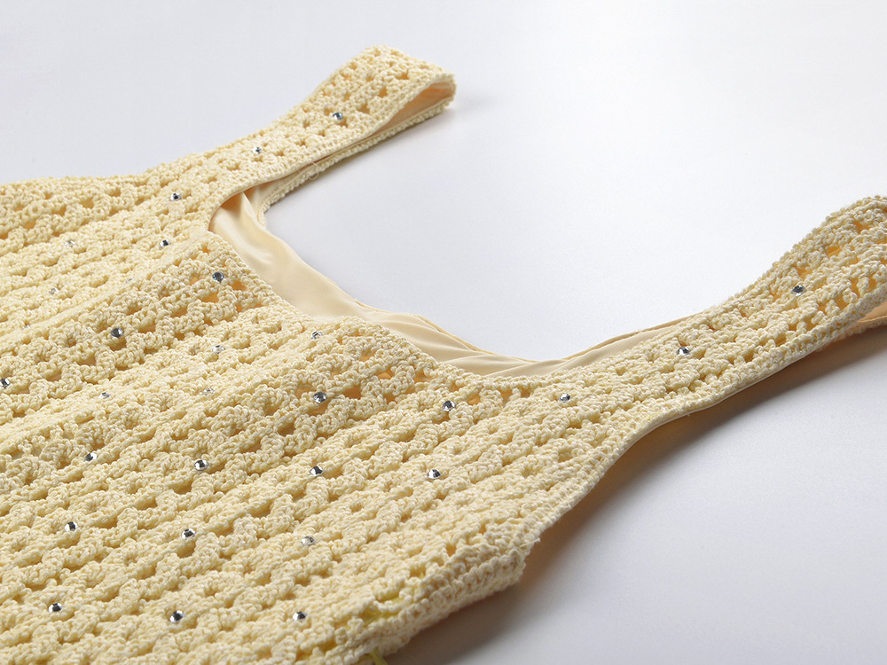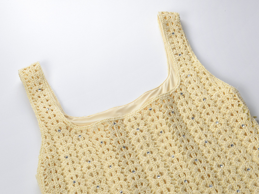 Light Yellow Hollow Out Crochet Tank Dress Women 2025 Summer New Fashion Elegant A-Line Strap Dresses 5250110