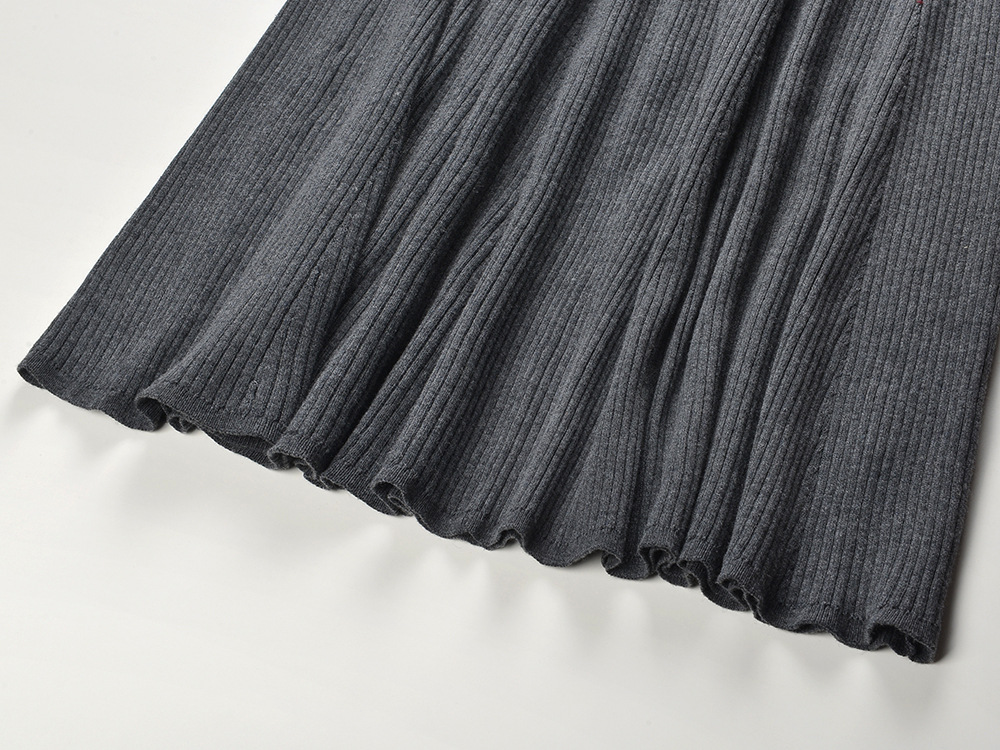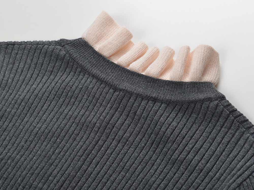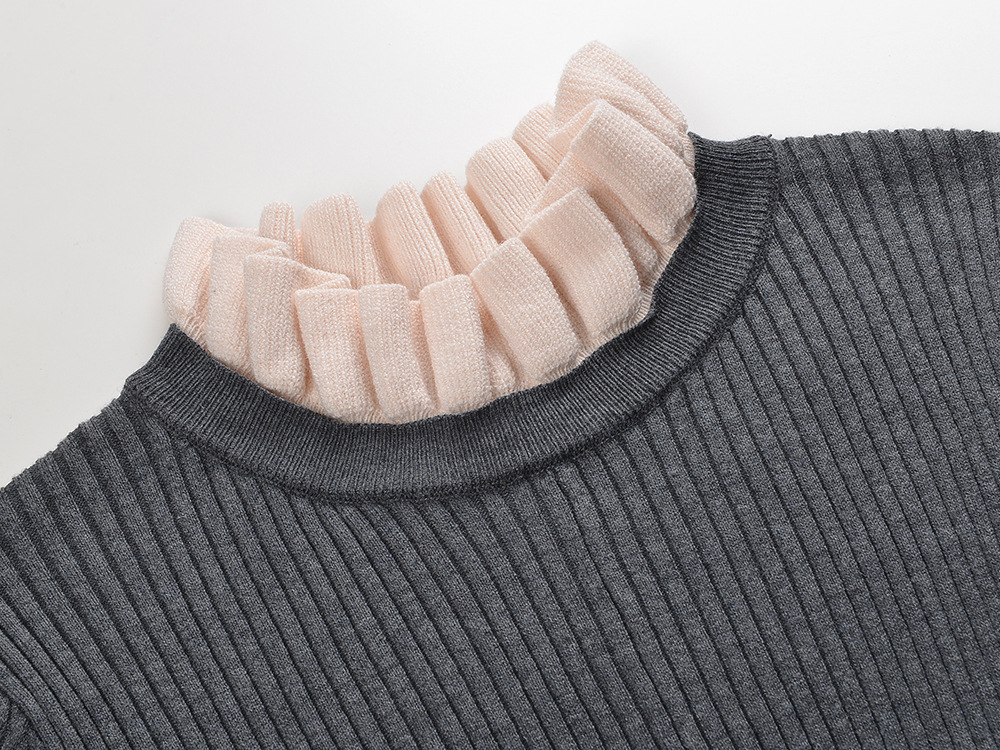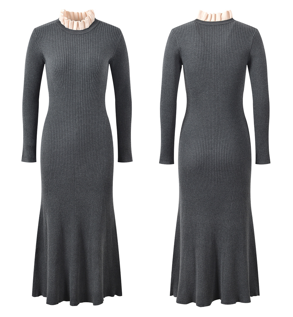 Newest Lady Gray Knitting Long Dress Women 2024 Fall Winter Ruffles Collar Long Sleeve Solid Maxi Dresses 5240203