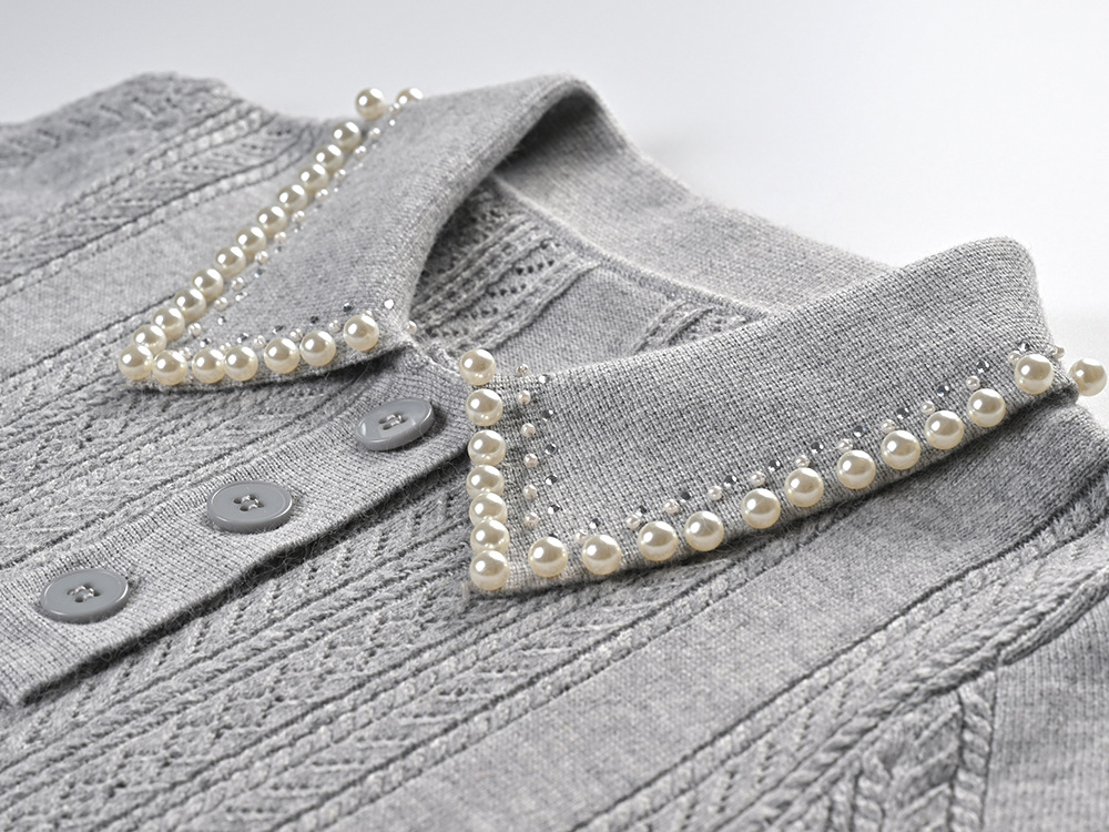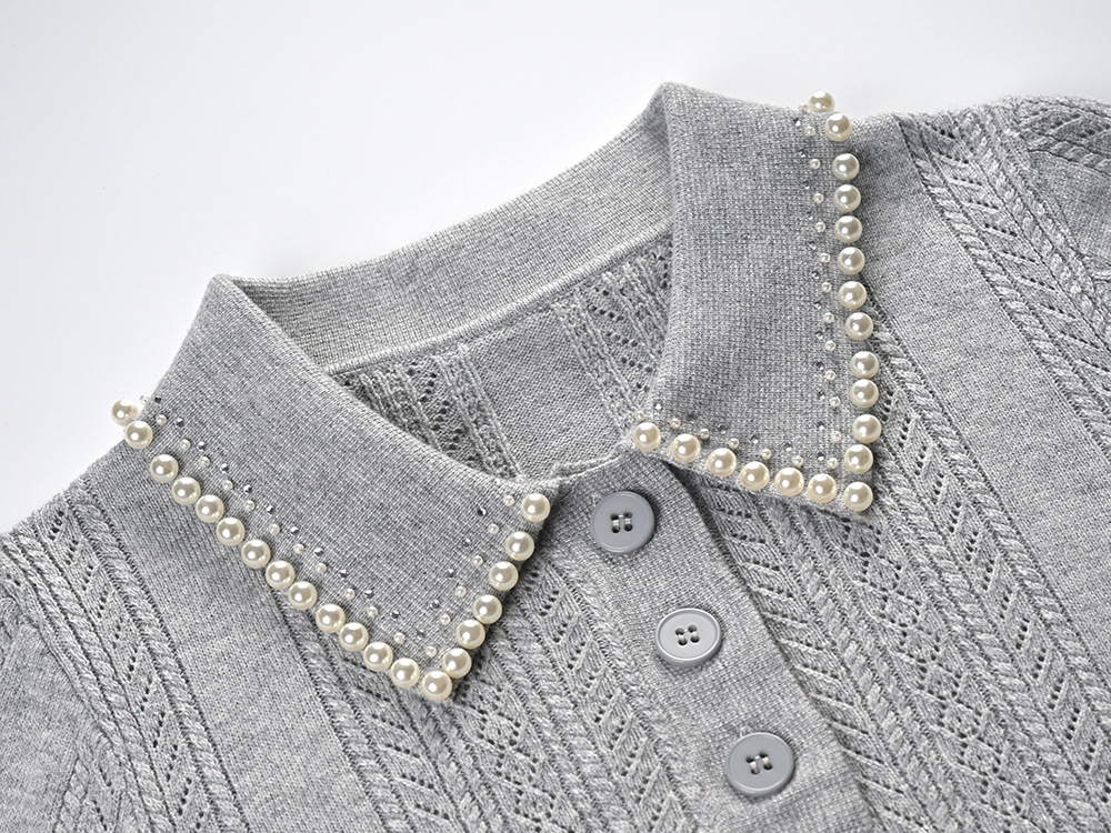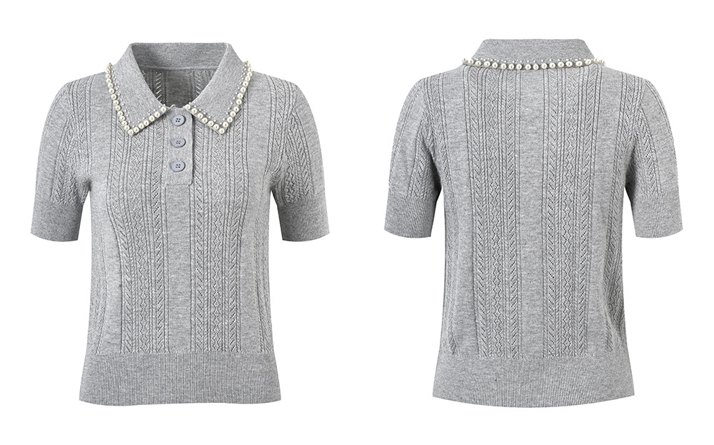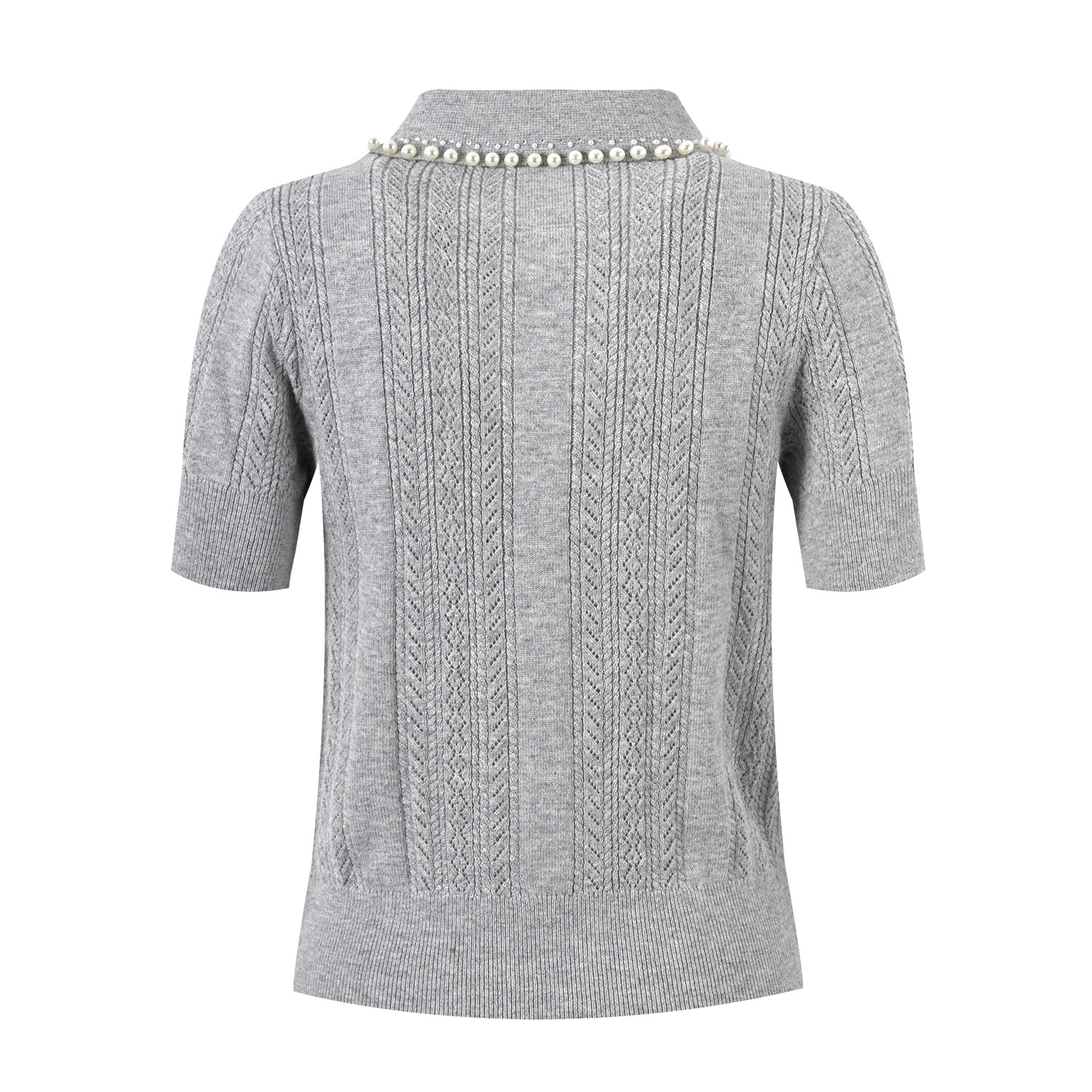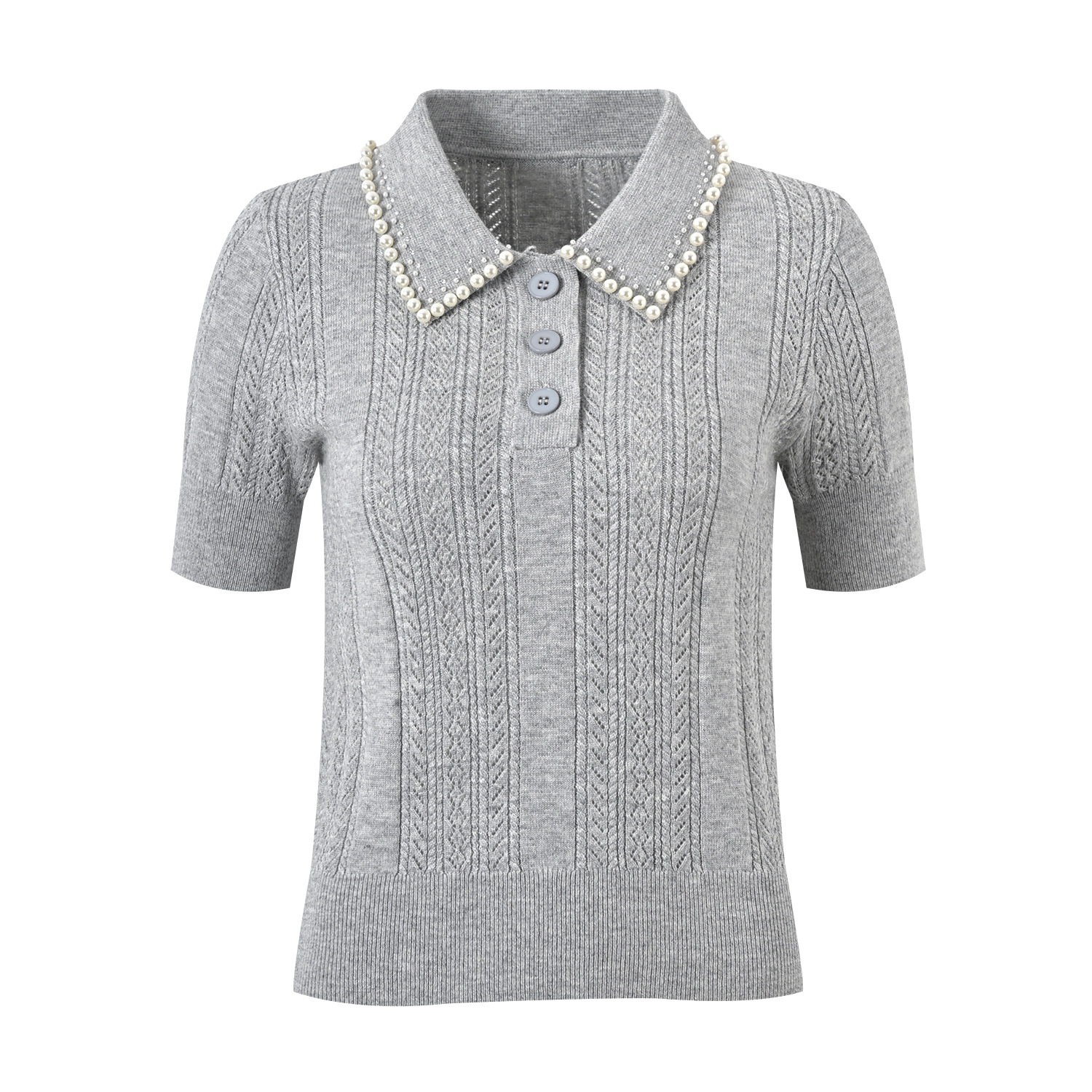 Niche Design Pearl Bordered Polo Collar Jacquard Top 2024 Summer/Autumn Stylish Aging Knitted Short Sleeve