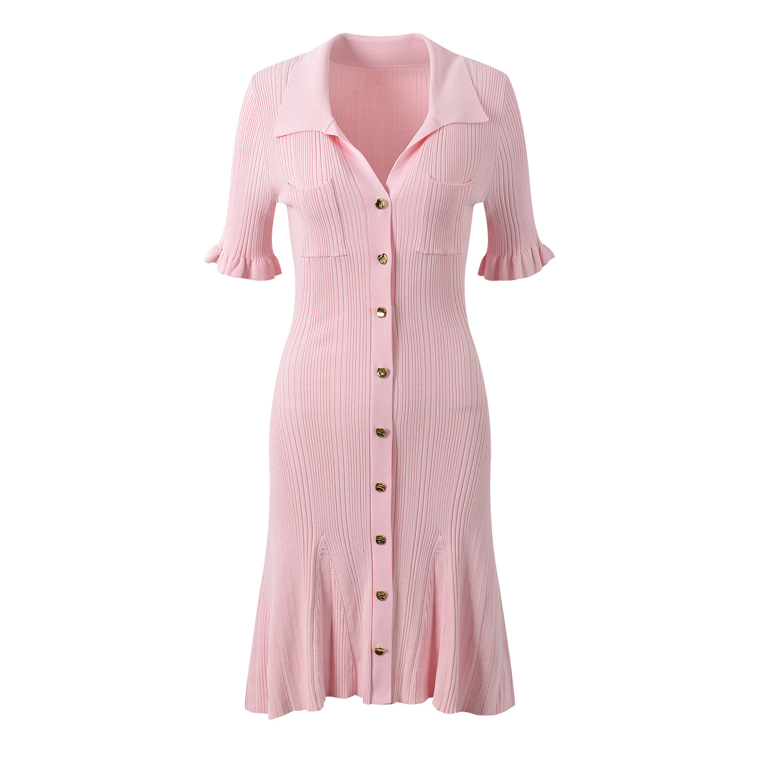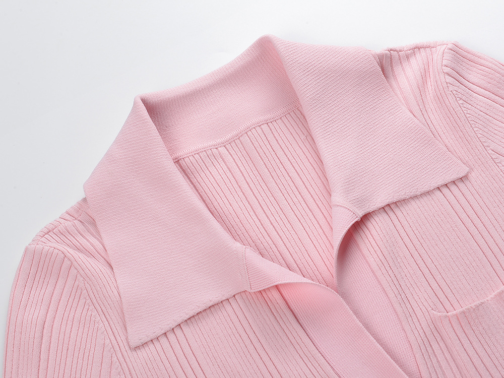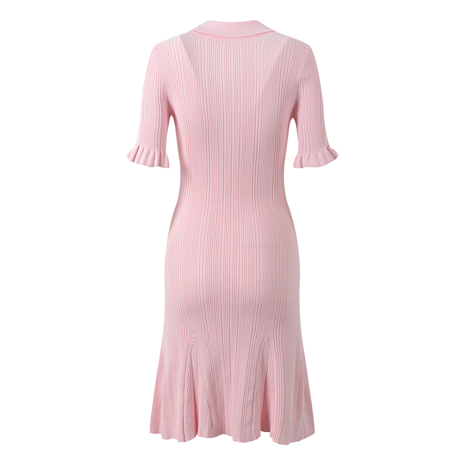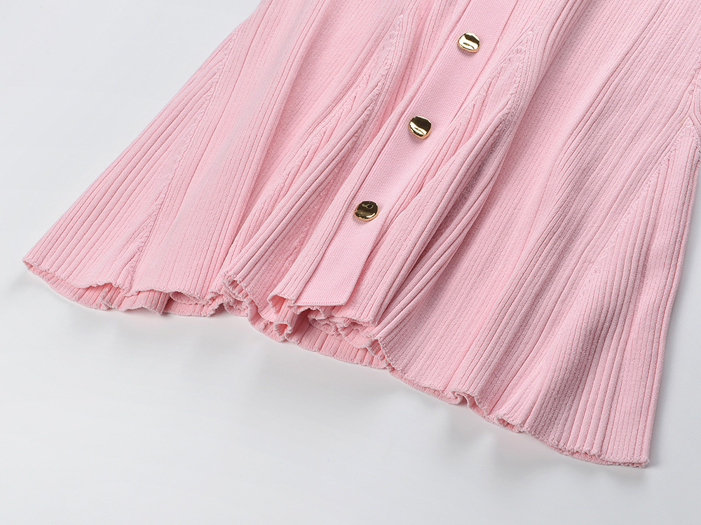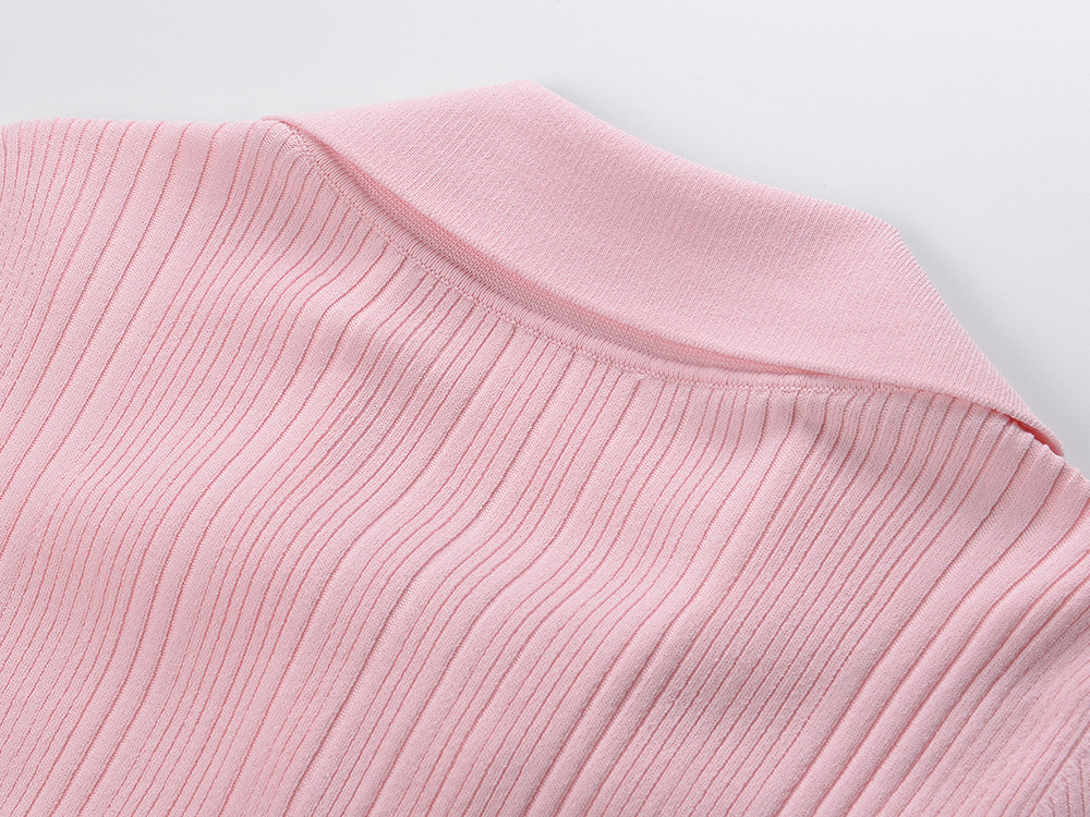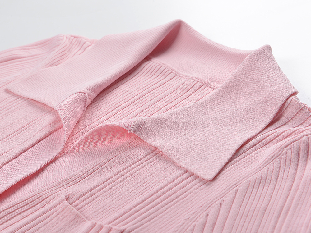 Pink Knitted Dress Women 2024 New Fashion Summer Elegant Turn Down Collar Single Breasted Short Sleeve Slim Dresses 5240044Availability: 500 in stock (can be backordered)