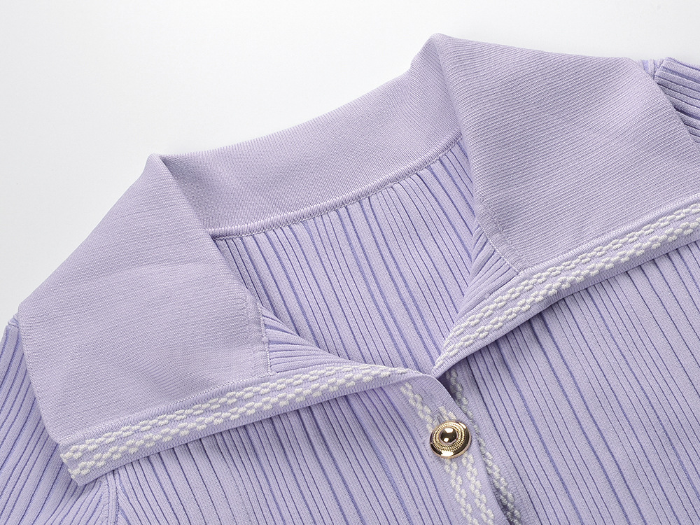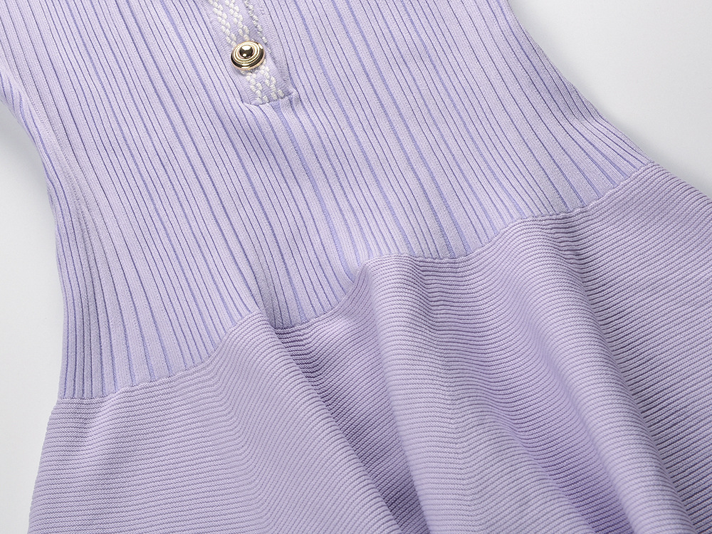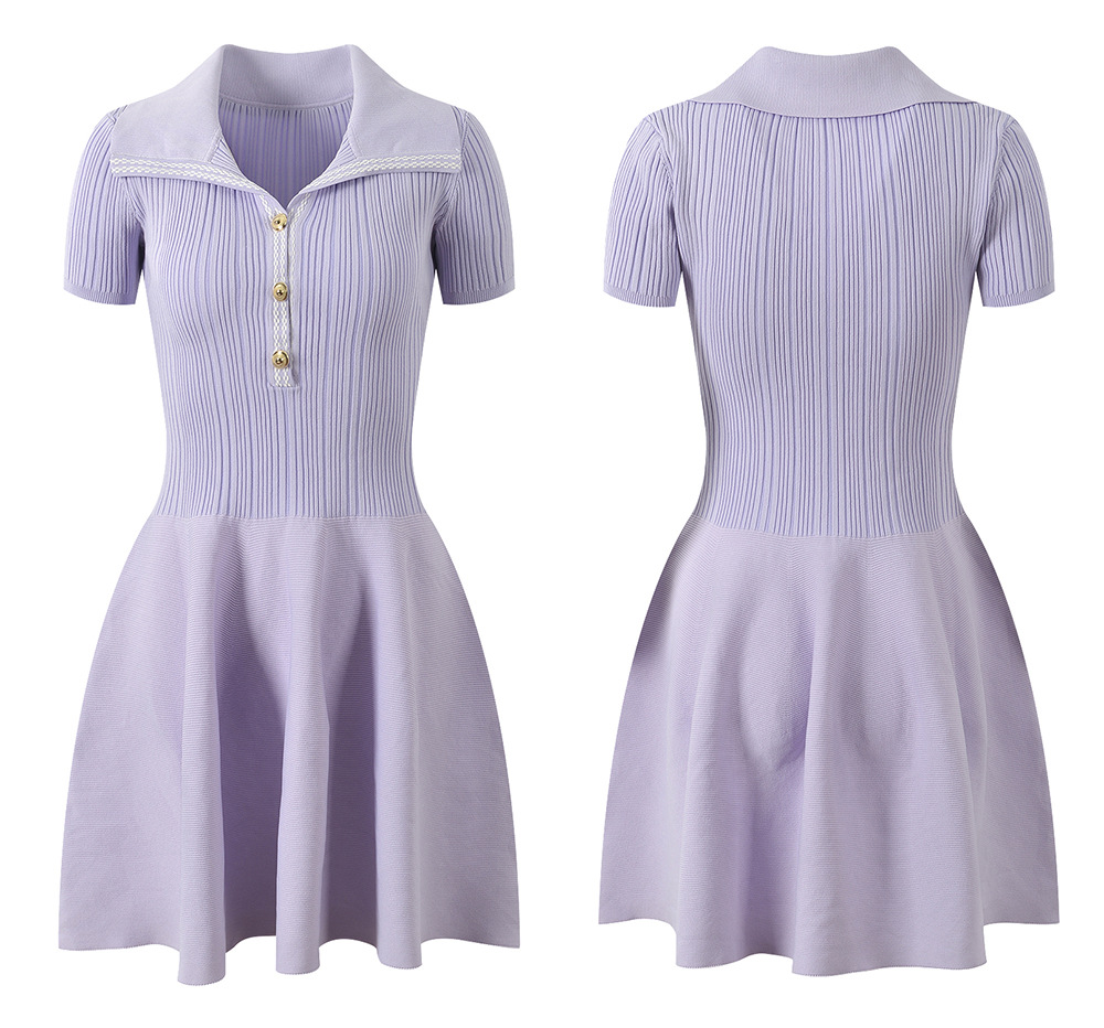 Purple Turn-down Collar Short-sleeved Knitted Mini Dress 2025 Summer New Fashion Slim Dresses 5250075Availability: 500 in stock (can be backordered)