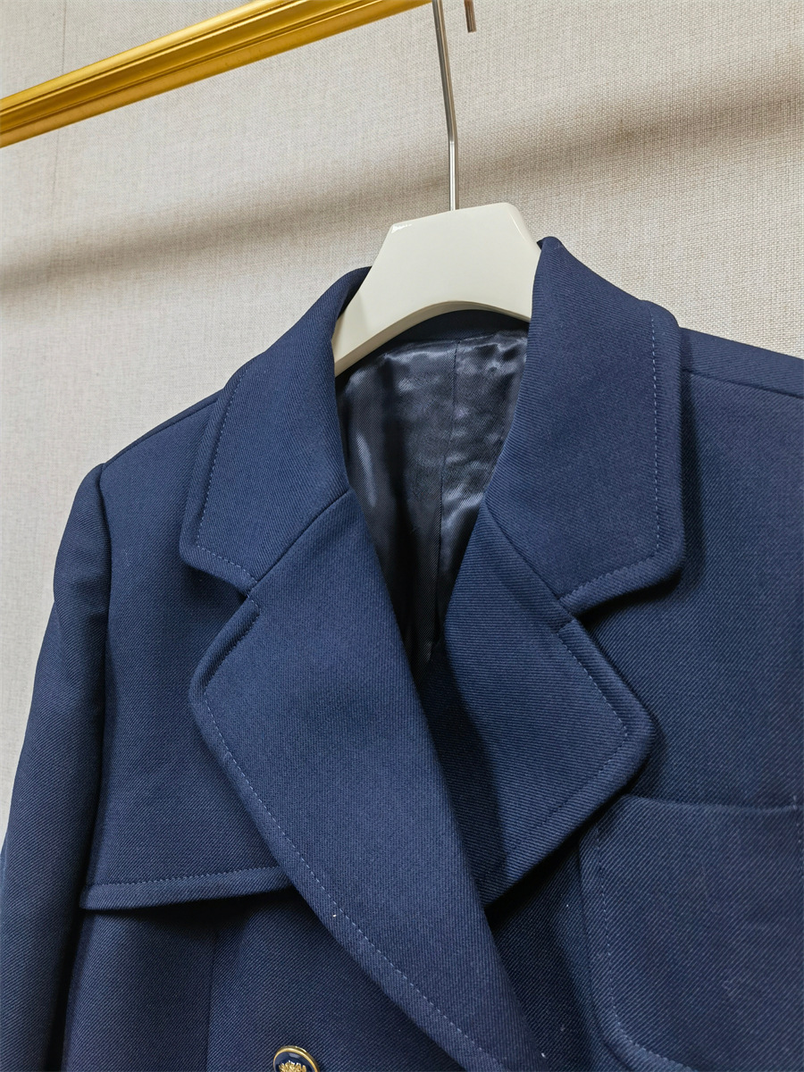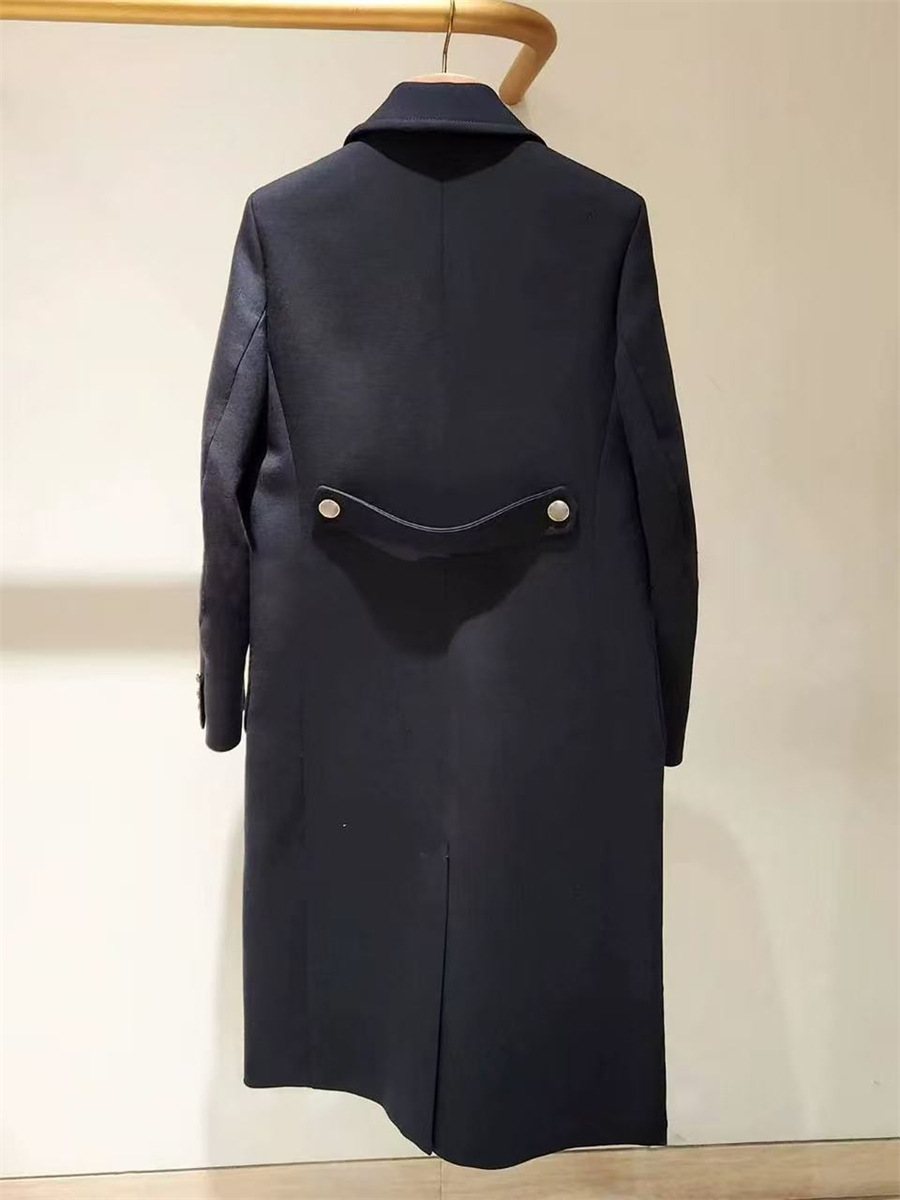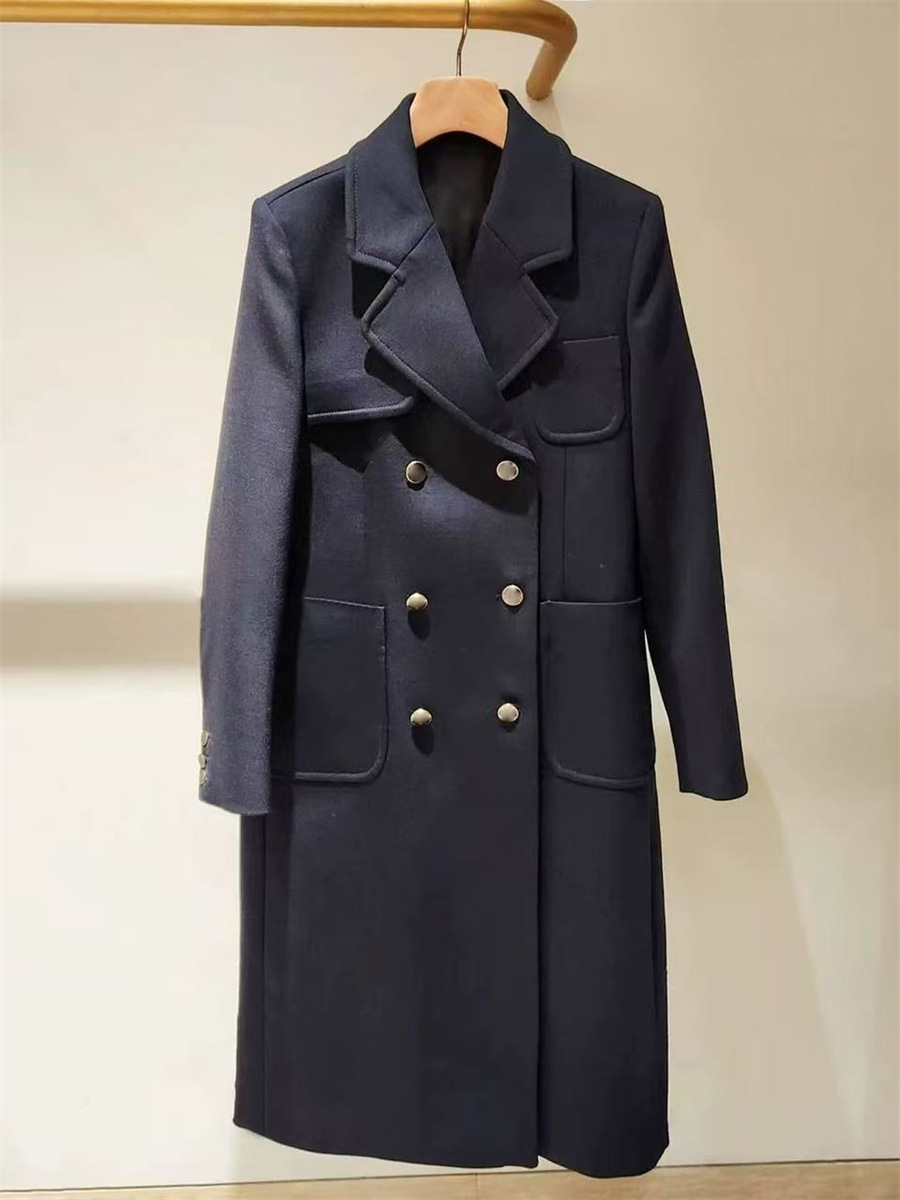Shixiaozhong 2025 Autumn/Winter New Style British Style Dark Blue Double-breasted Notch Collar Long Coat Jacket