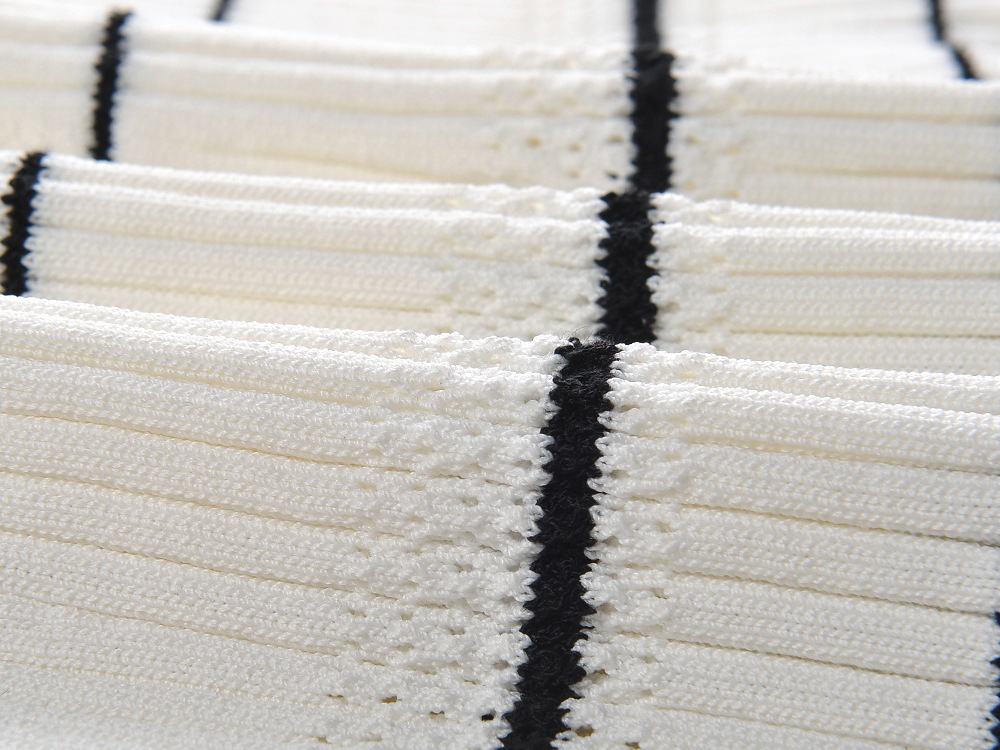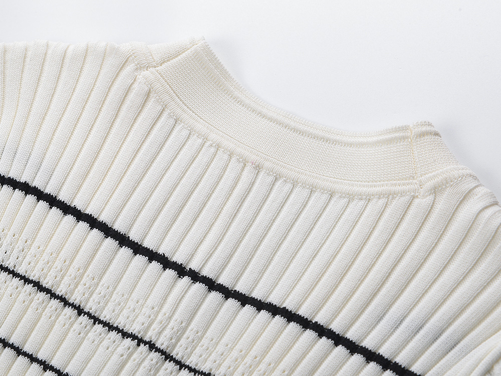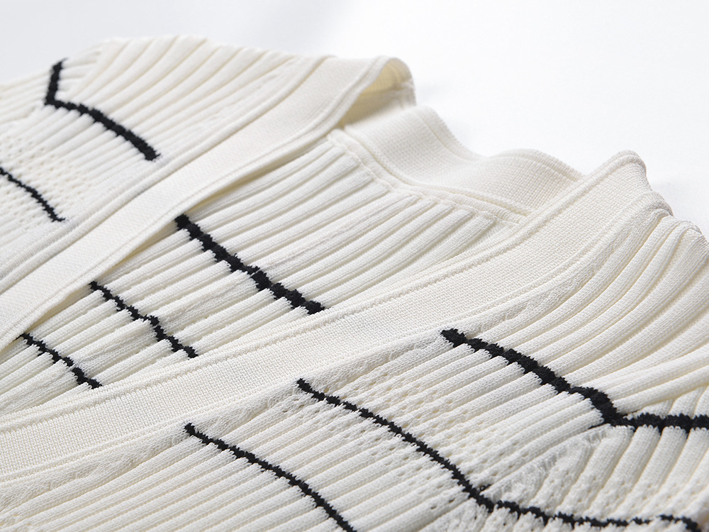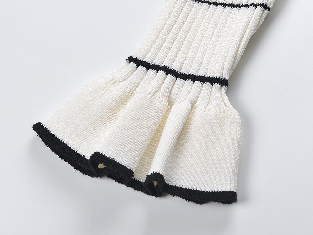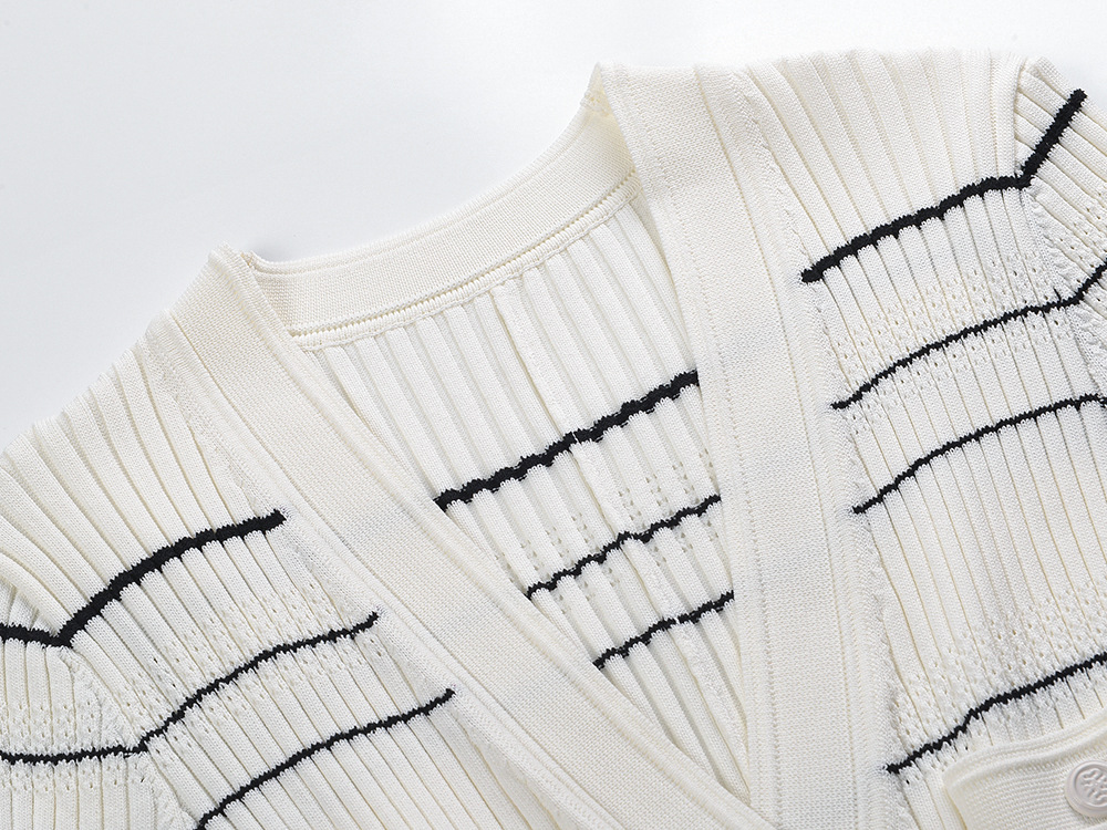 Stripes Knited Mid-Calf Dress Women 2025 Early Spring Lady V-Neck Single Breasted Slim Elegance Dress 5240361