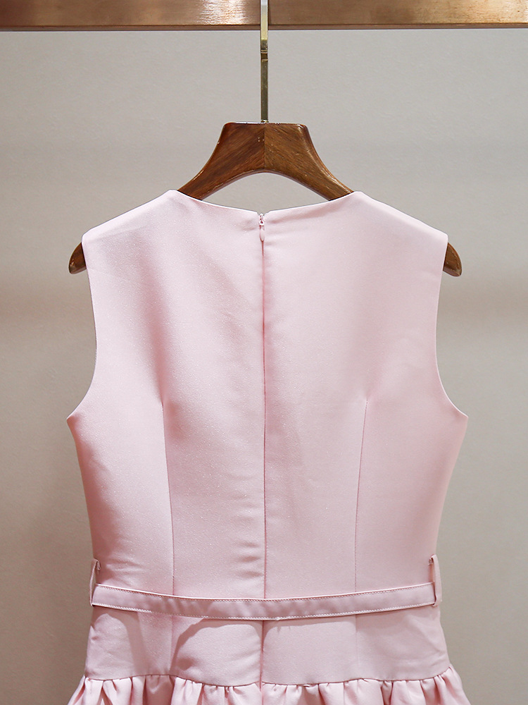 Summer new French high-end pink noble round neck A-line sleeveless long vest dressAvailability: 500 in stock (can be backordered)