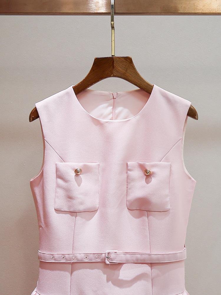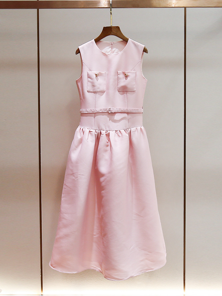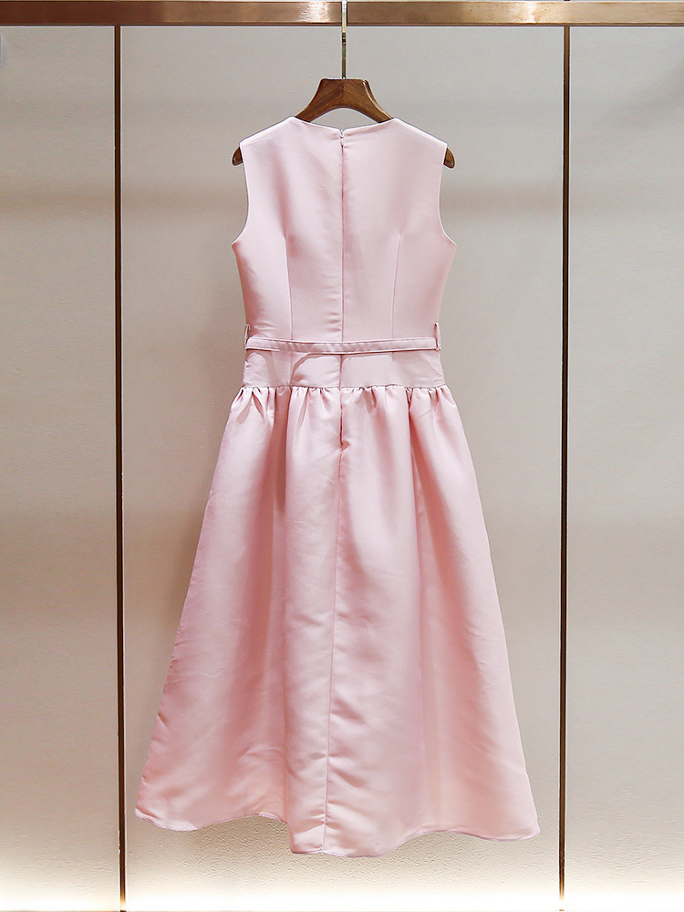 Summer new French high-end pink noble round neck A-line sleeveless long vest dressAvailability: 500 in stock (can be backordered)