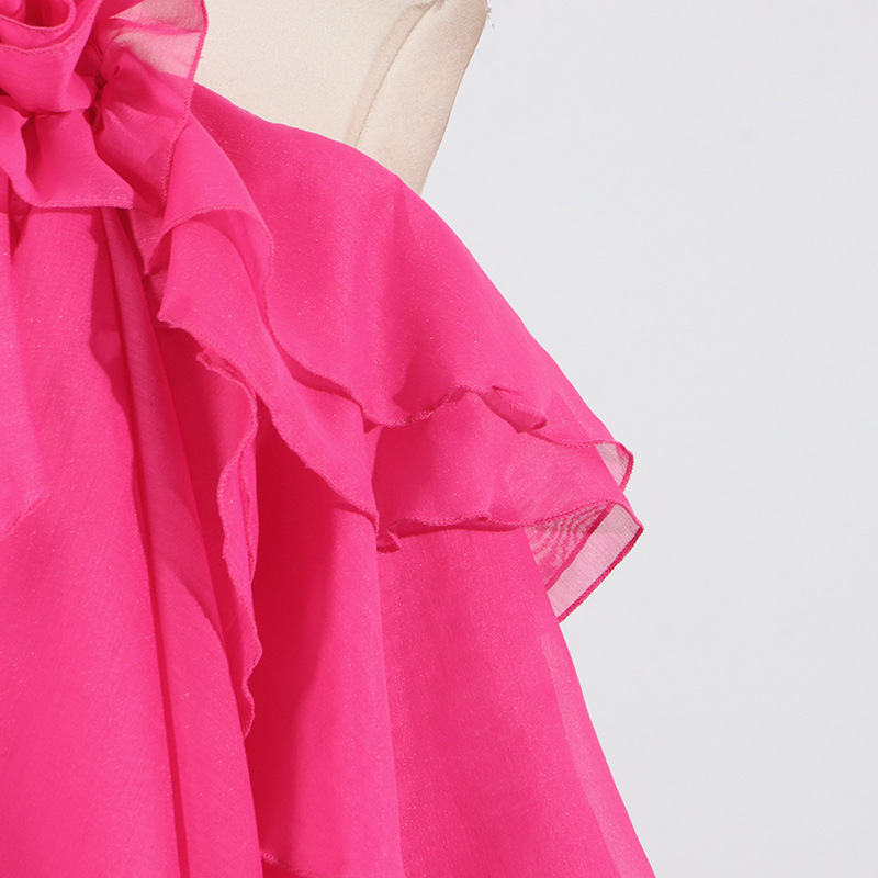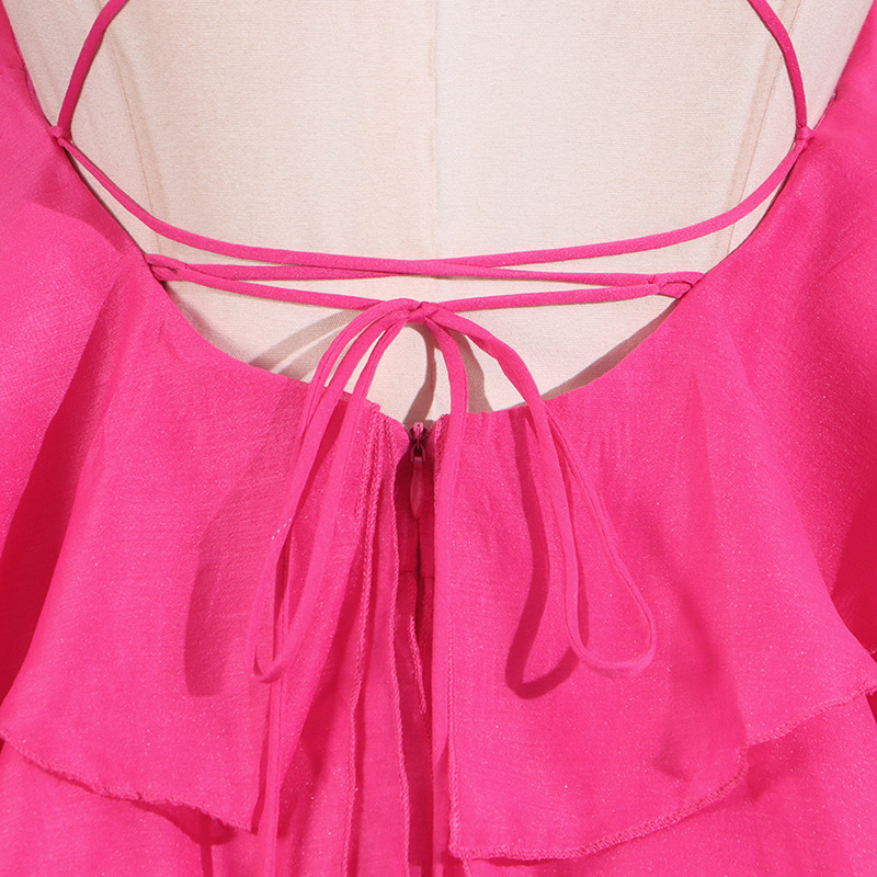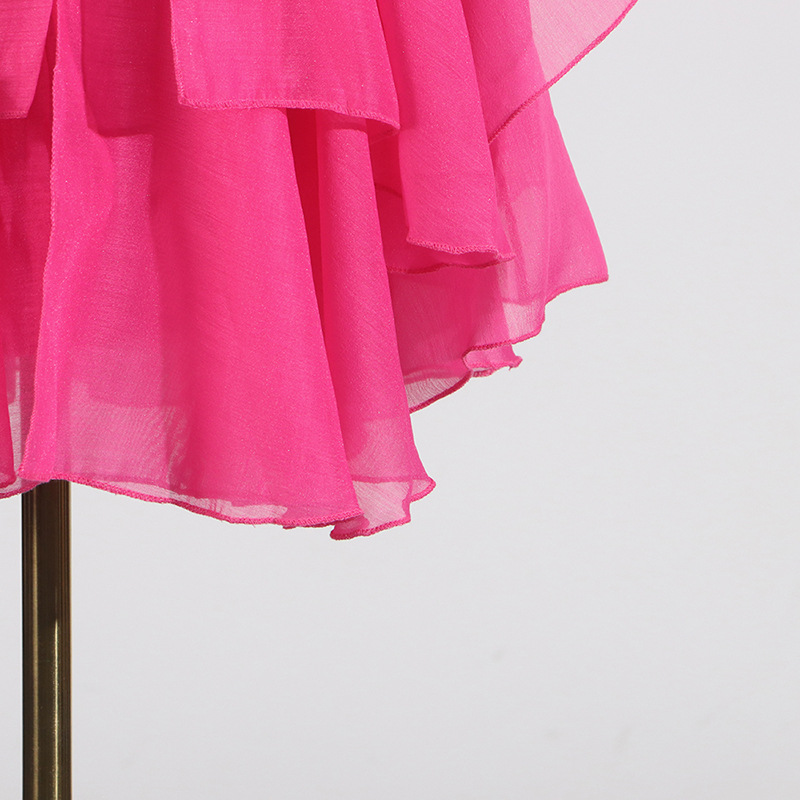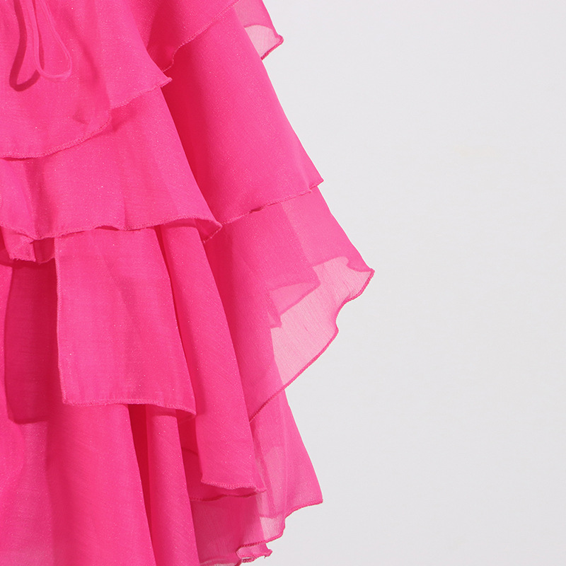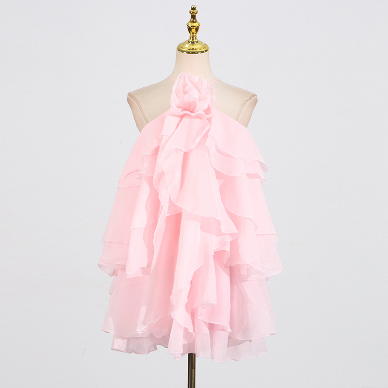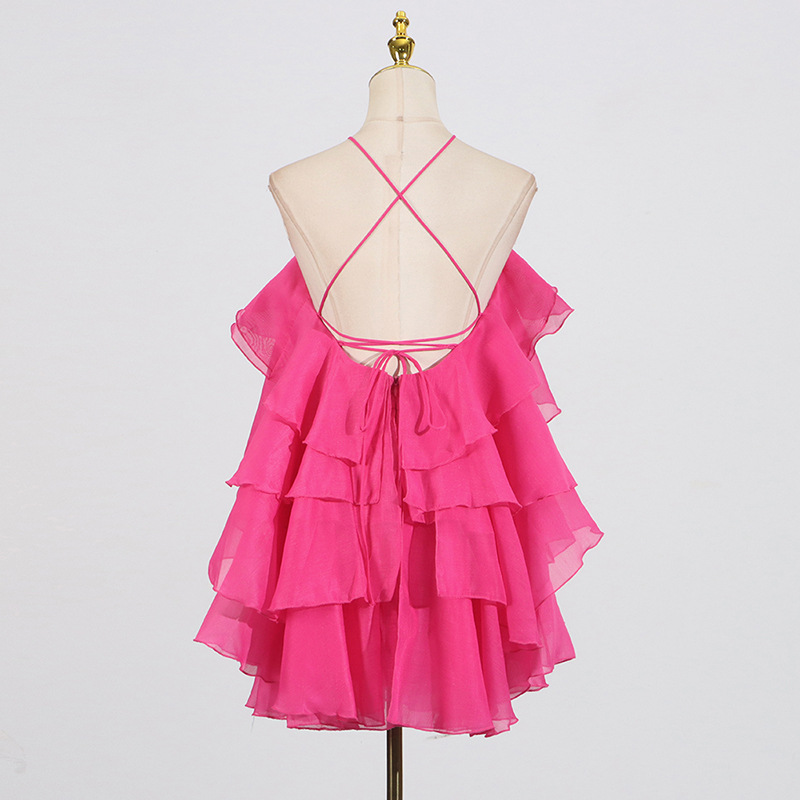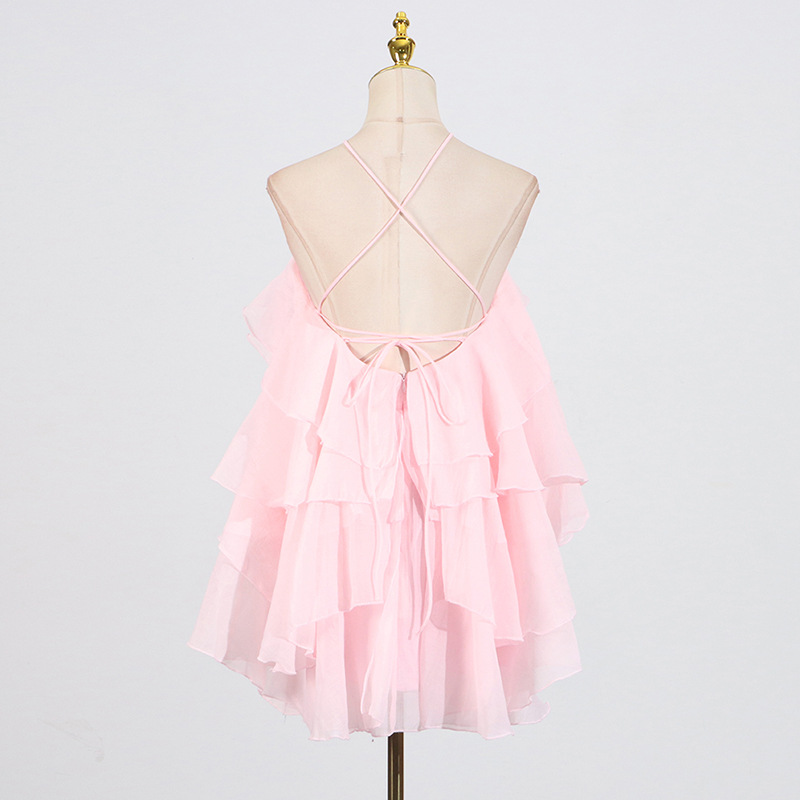 Sweet Wind Hanging Neck Dress for Women 2025 Autumn New Style Fashionable and Fresh Ruffle Edge Design Sense Solid Color Short Skirt for Women