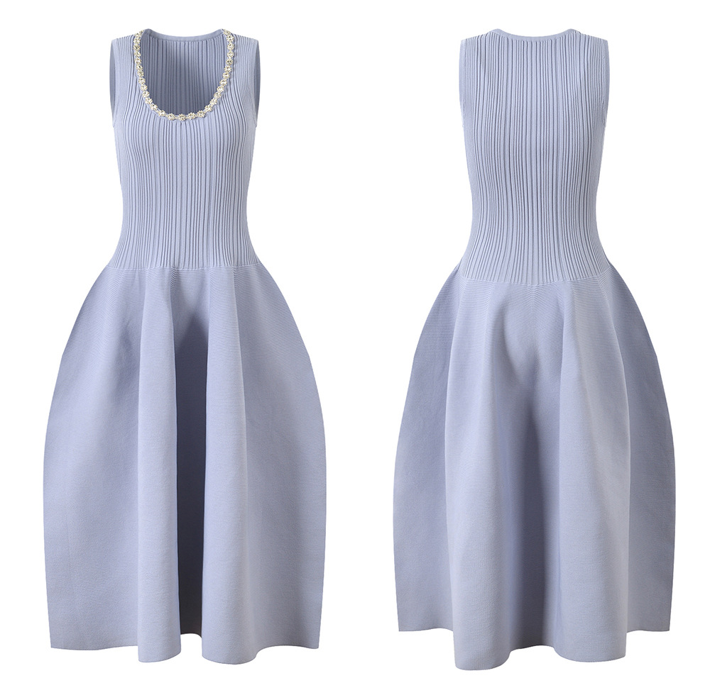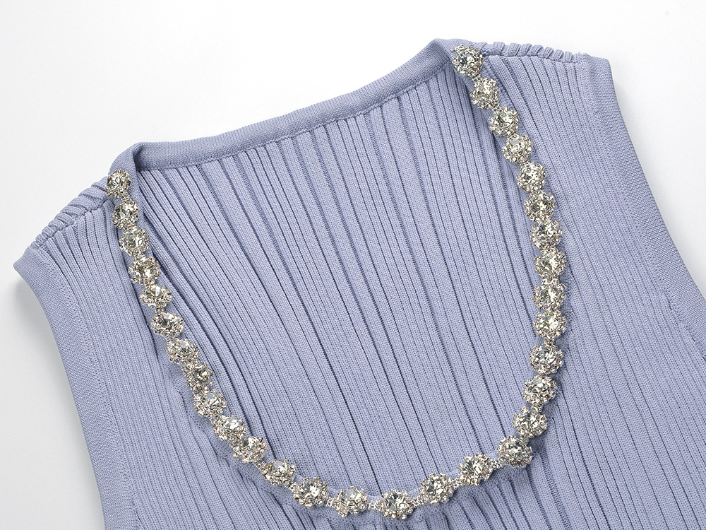 U-neck Diamond Decoration Knited Dress Women 2025 Spring Summer New Fashion Elegant Sleeveless Slim Dresses 5250056