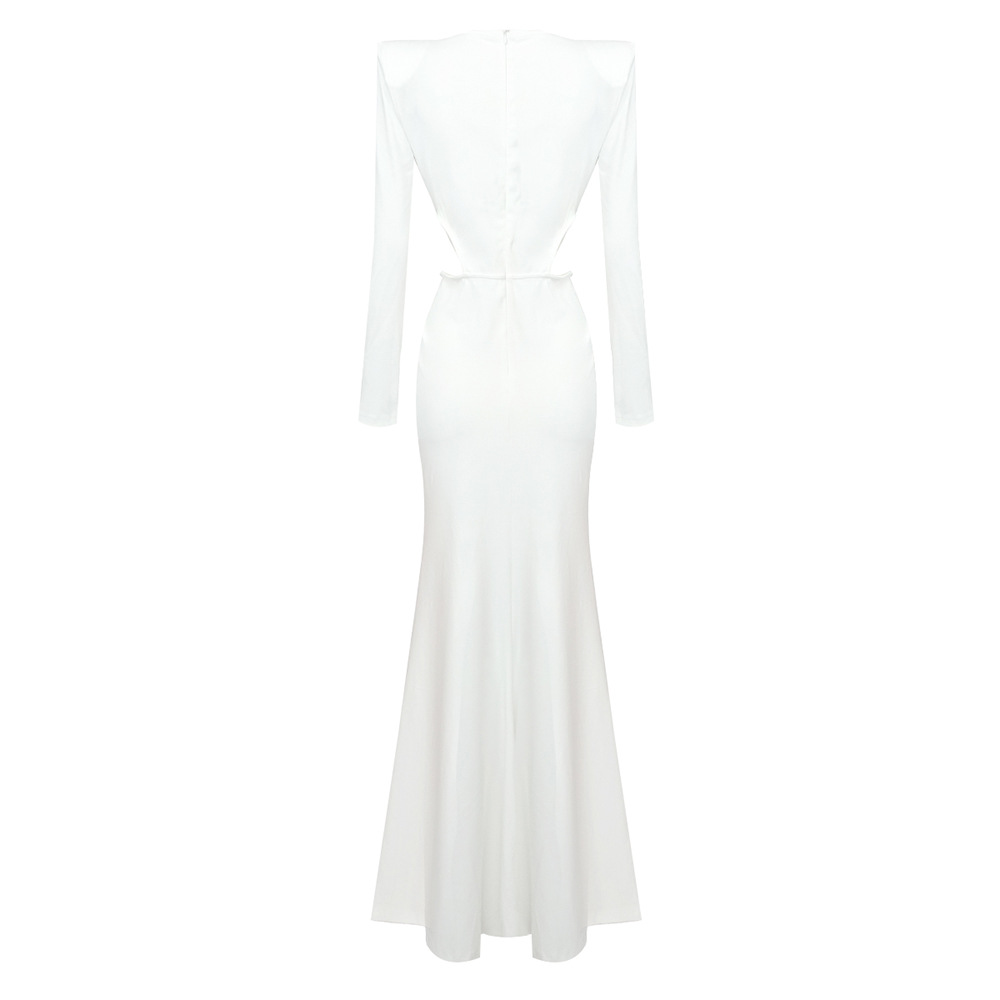 White long-sleeved pleated open-front V-neck crisscrossed dress with stretch fabric suitable for spring imported from Europe and the United States women’s clothing
