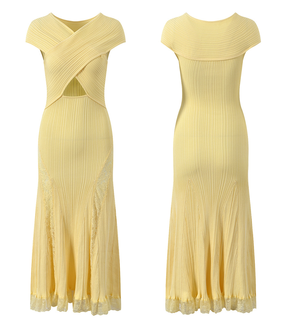 White Suspender Cross V-Neck Knitted Dress Women’s 2025 Summer Elegant Lace Desses 5250100